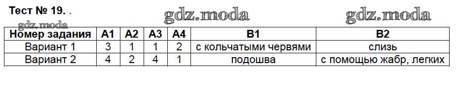 ГДЗ решение к заданию № 19 Биология 7 класс КИМ Артемьева Н.А. ВАКО 2018 ФГОС бесплатно на гдз.мода!