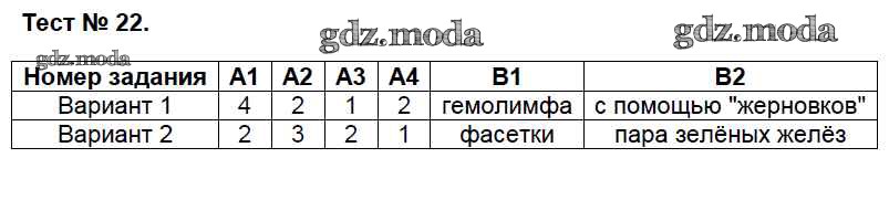 ГДЗ решение к заданию № 22 Биология 7 класс КИМ Артемьева Н.А. ВАКО 2018 ФГОС бесплатно на гдз.мода!