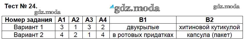 ГДЗ решение к заданию № 24 Биология 7 класс КИМ Артемьева Н.А. ВАКО 2018 ФГОС бесплатно на гдз.мода!