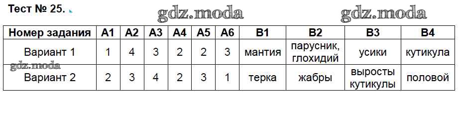 ГДЗ решение к заданию № 25 Биология 7 класс КИМ Артемьева Н.А. ВАКО 2018 ФГОС бесплатно на гдз.мода!