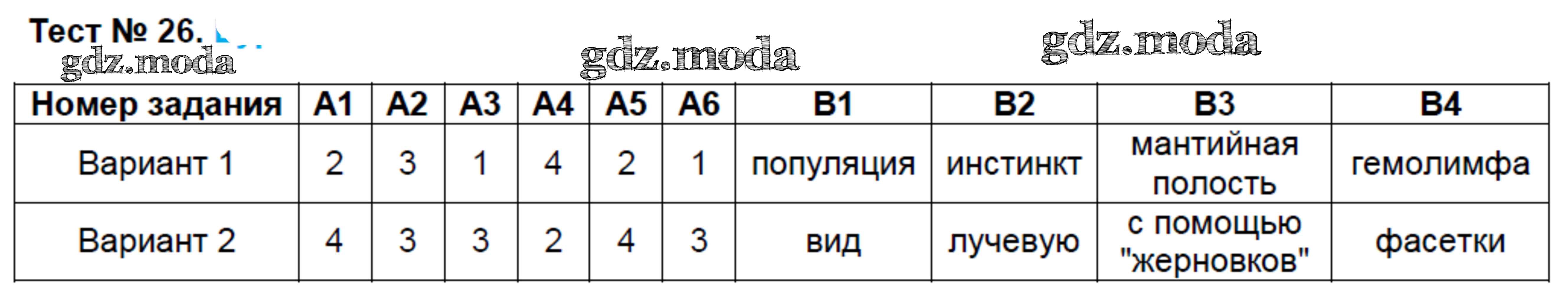 ГДЗ решение к заданию № 26 Биология 7 класс КИМ Артемьева Н.А. ВАКО 2018 ФГОС бесплатно на гдз.мода!