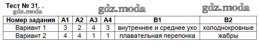 ГДЗ решение к заданию № 31 Биология 7 класс КИМ Артемьева Н.А. ВАКО 2018 ФГОС бесплатно на гдз.мода!