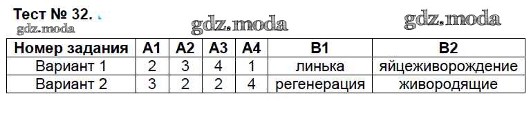 ГДЗ решение к заданию № 32 Биология 7 класс КИМ Артемьева Н.А. ВАКО 2018 ФГОС бесплатно на гдз.мода!
