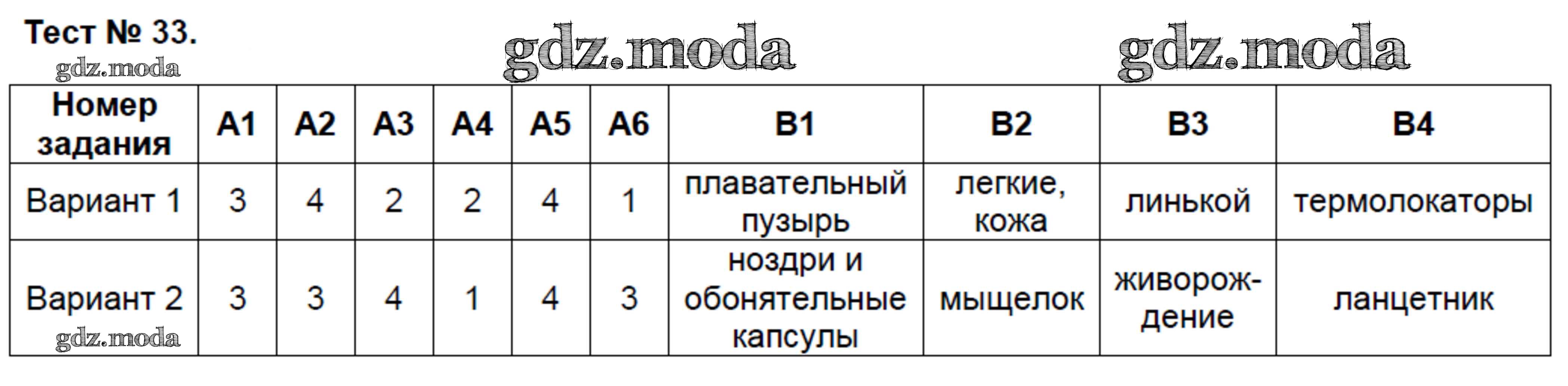 ГДЗ решение к заданию № 33 Биология 7 класс КИМ Артемьева Н.А. ВАКО 2018 ФГОС бесплатно на гдз.мода!