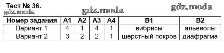 ГДЗ решение к заданию № 36 Биология 7 класс КИМ Артемьева Н.А. ВАКО 2018 ФГОС бесплатно на гдз.мода!