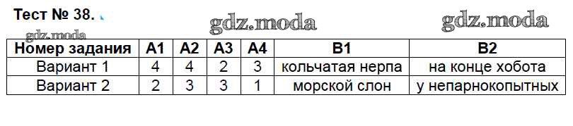 ГДЗ решение к заданию № 38 Биология 7 класс КИМ Артемьева Н.А. ВАКО 2018 ФГОС бесплатно на гдз.мода!