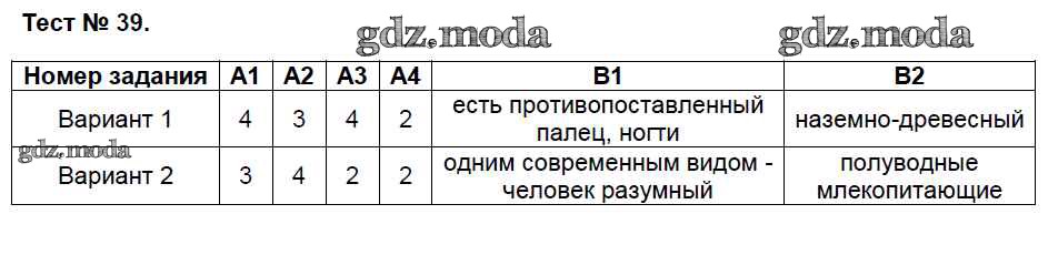 ГДЗ решение к заданию № 39 Биология 7 класс КИМ Артемьева Н.А. ВАКО 2018 ФГОС бесплатно на гдз.мода!