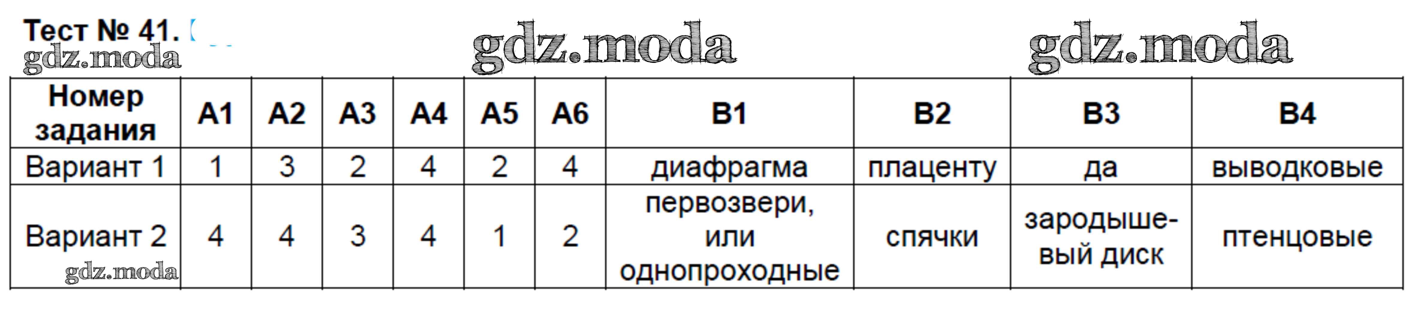 ГДЗ решение к заданию № 41 Биология 7 класс КИМ Артемьева Н.А. ВАКО 2018 ФГОС бесплатно на гдз.мода!