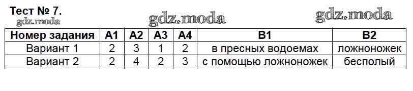 ГДЗ решение к заданию № 7 Биология 7 класс КИМ Артемьева Н.А. ВАКО 2018 ФГОС бесплатно на гдз.мода!