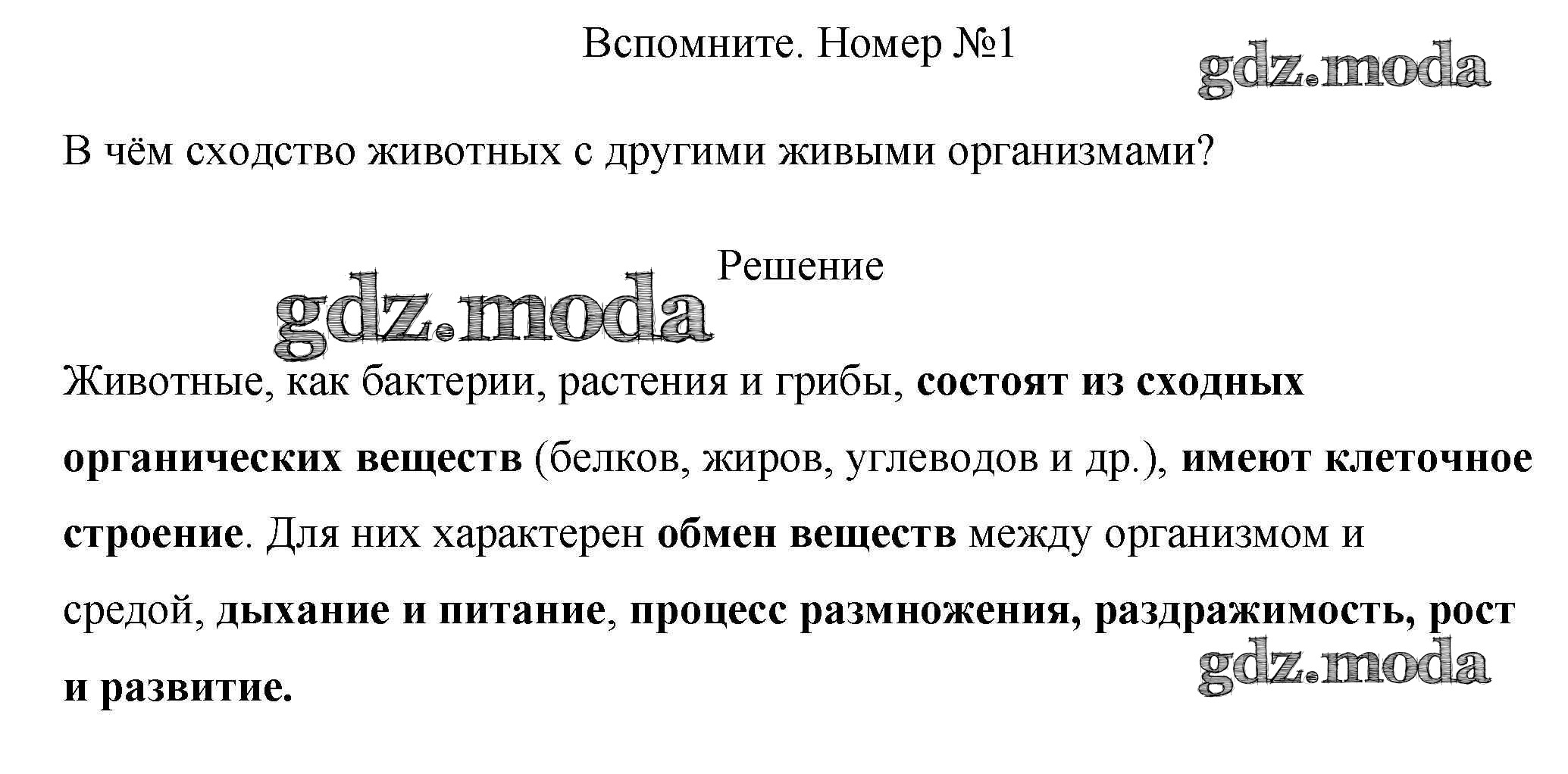 §1. особенности, многообразие и классификация животных / вспомните / 1
