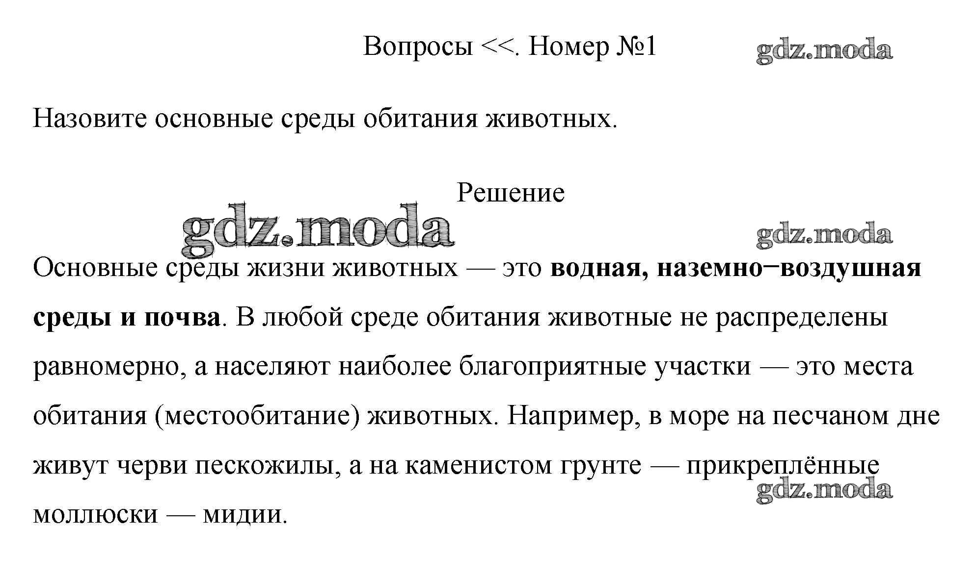 §2. среды обитания и сезонные изменения в жизни животных / вопрос / 1