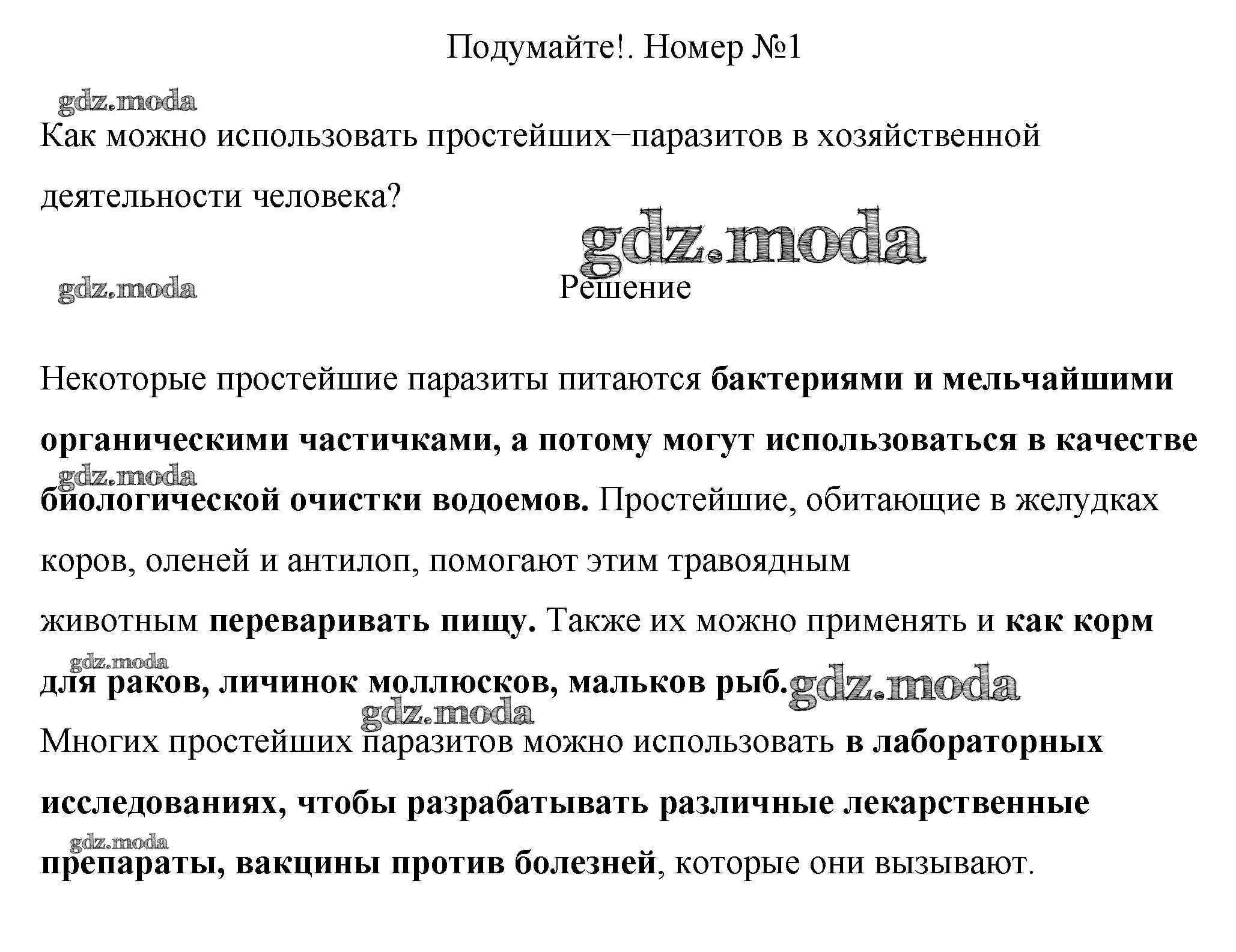 §5. паразитические простейшие. Значение простейших / подумайте / 1