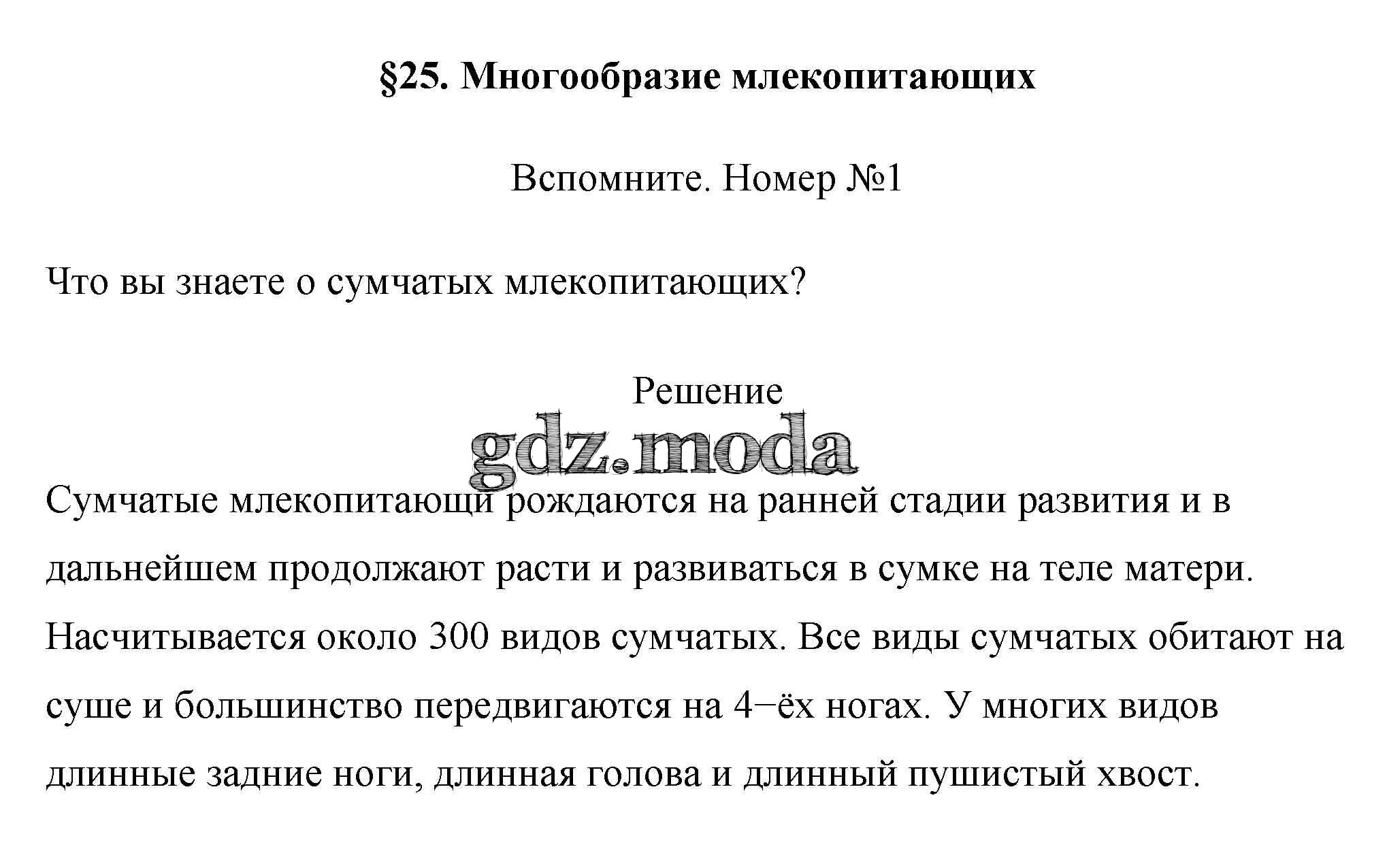 ГДЗ решение к заданию № 1 Биология 7 класс Пасечник Линия Жизни Просвещение 2022 ФГОС бесплатно на гдз.мода!