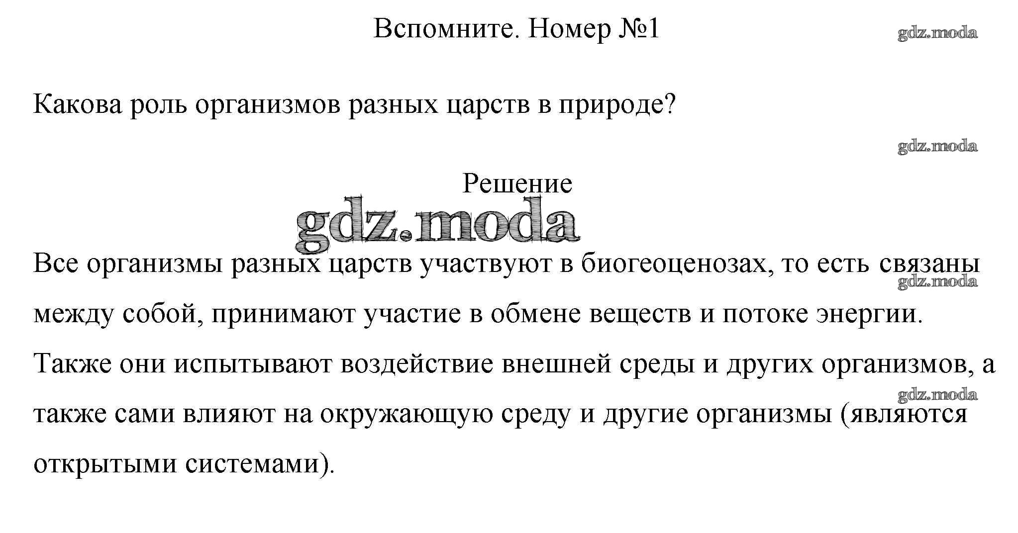 ГДЗ решение к заданию № 1 Биология 7 класс Пасечник Линия Жизни Просвещение 2022 ФГОС бесплатно на гдз.мода!