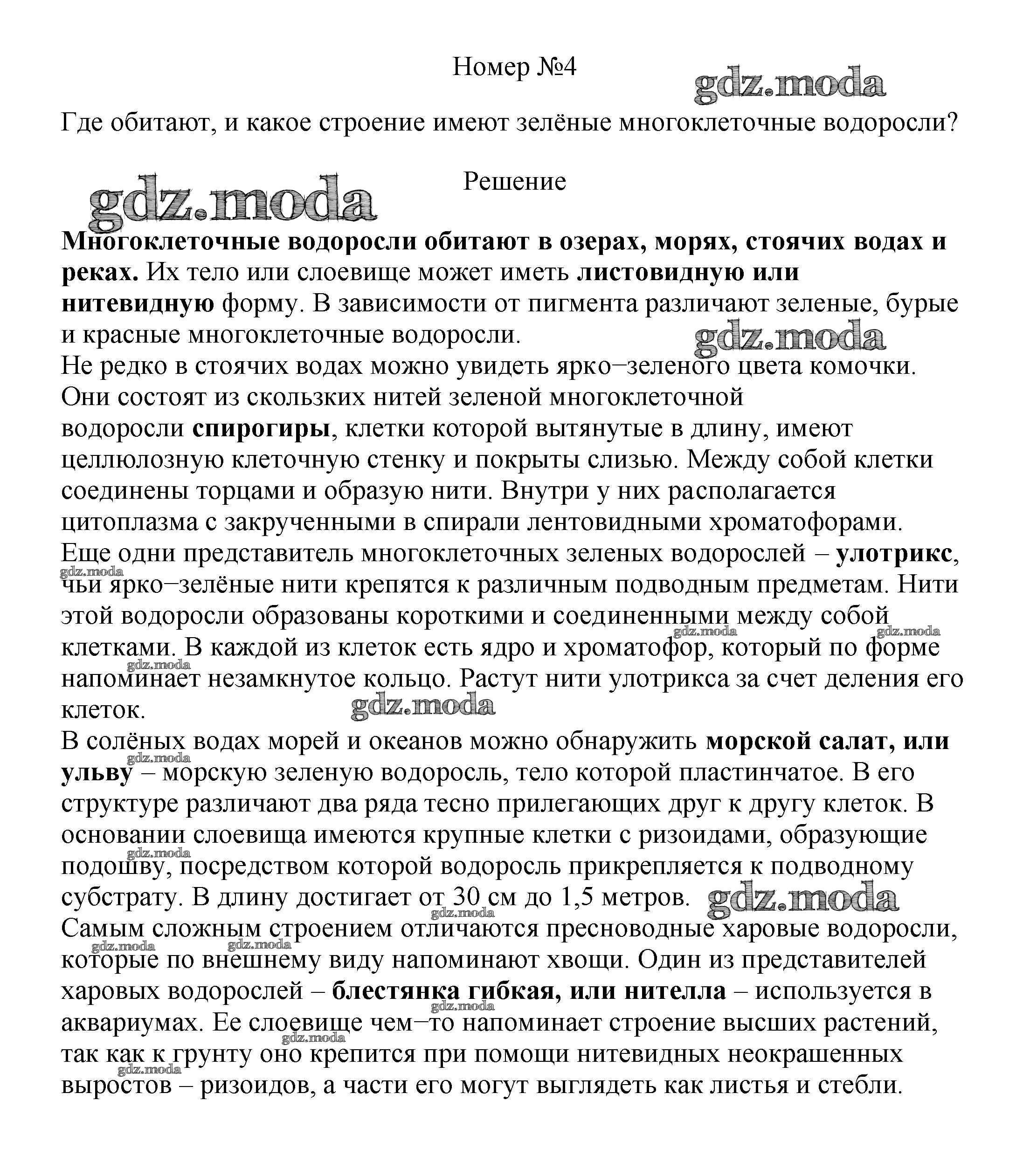 ГДЗ решение к заданию № 4 Биология 7 класс Пасечник В.В. Дрофа 2020 Линейный курс ФГОС бесплатно на гдз.мода!