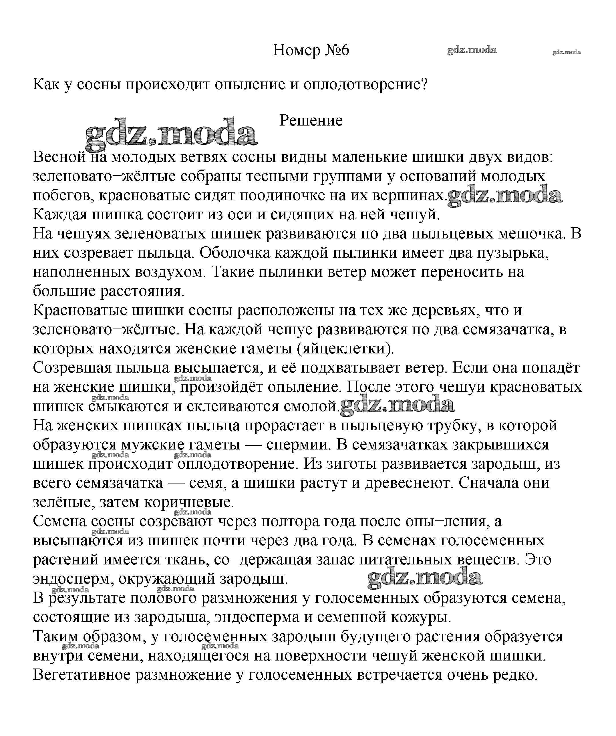 ГДЗ решение к заданию № 6 Биология 7 класс Пасечник В.В. Дрофа 2020 Линейный курс ФГОС бесплатно на гдз.мода!