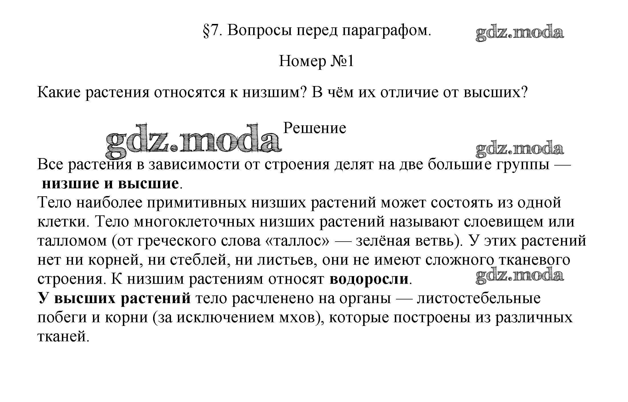 ГДЗ решение к заданию № 1 Биология 7 класс Пасечник В.В. Дрофа 2020 Линейный курс ФГОС бесплатно на гдз.мода!
