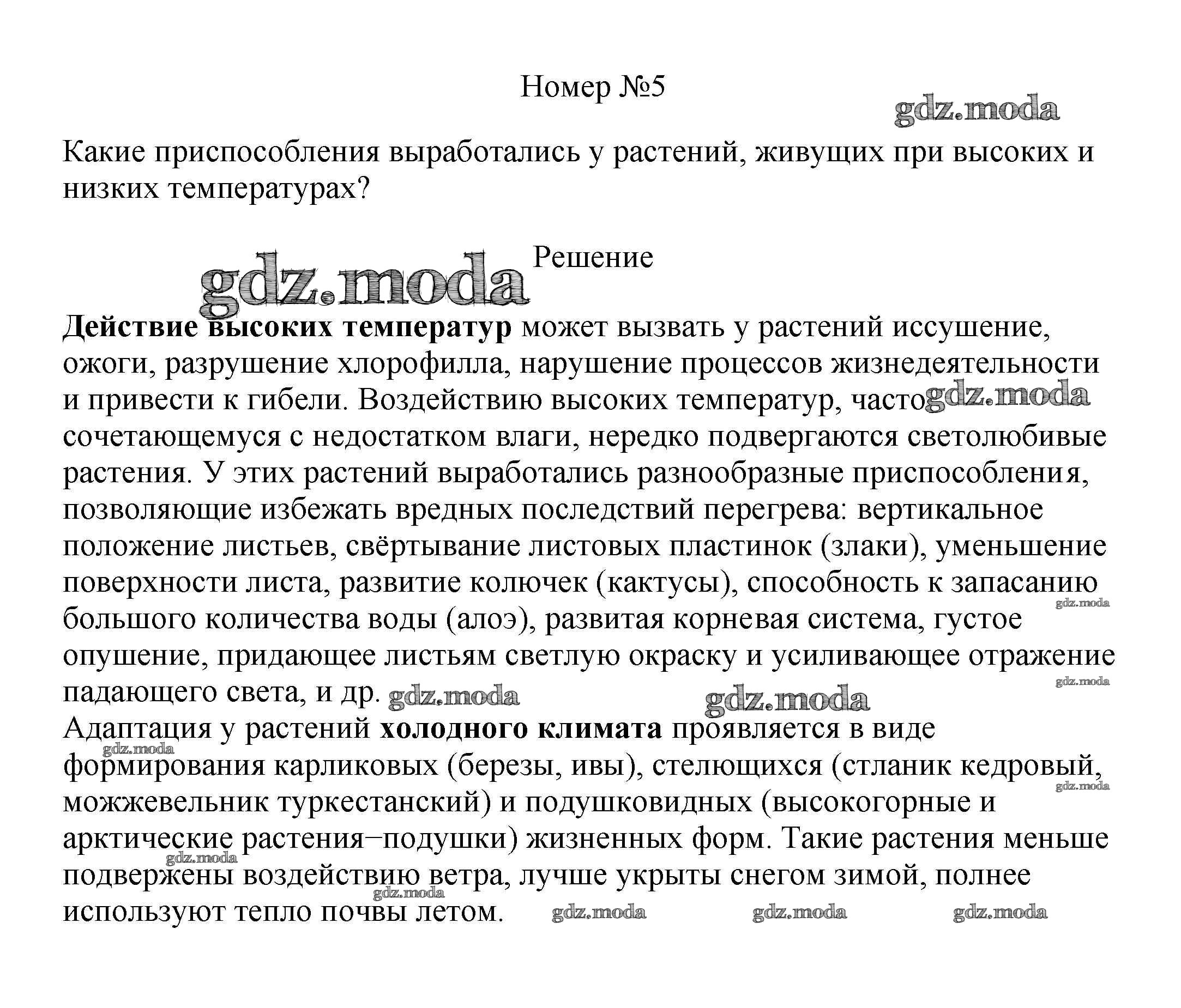 ГДЗ решение к заданию № 5 Биология 7 класс Пасечник В.В. Дрофа 2020 Линейный курс ФГОС бесплатно на гдз.мода!