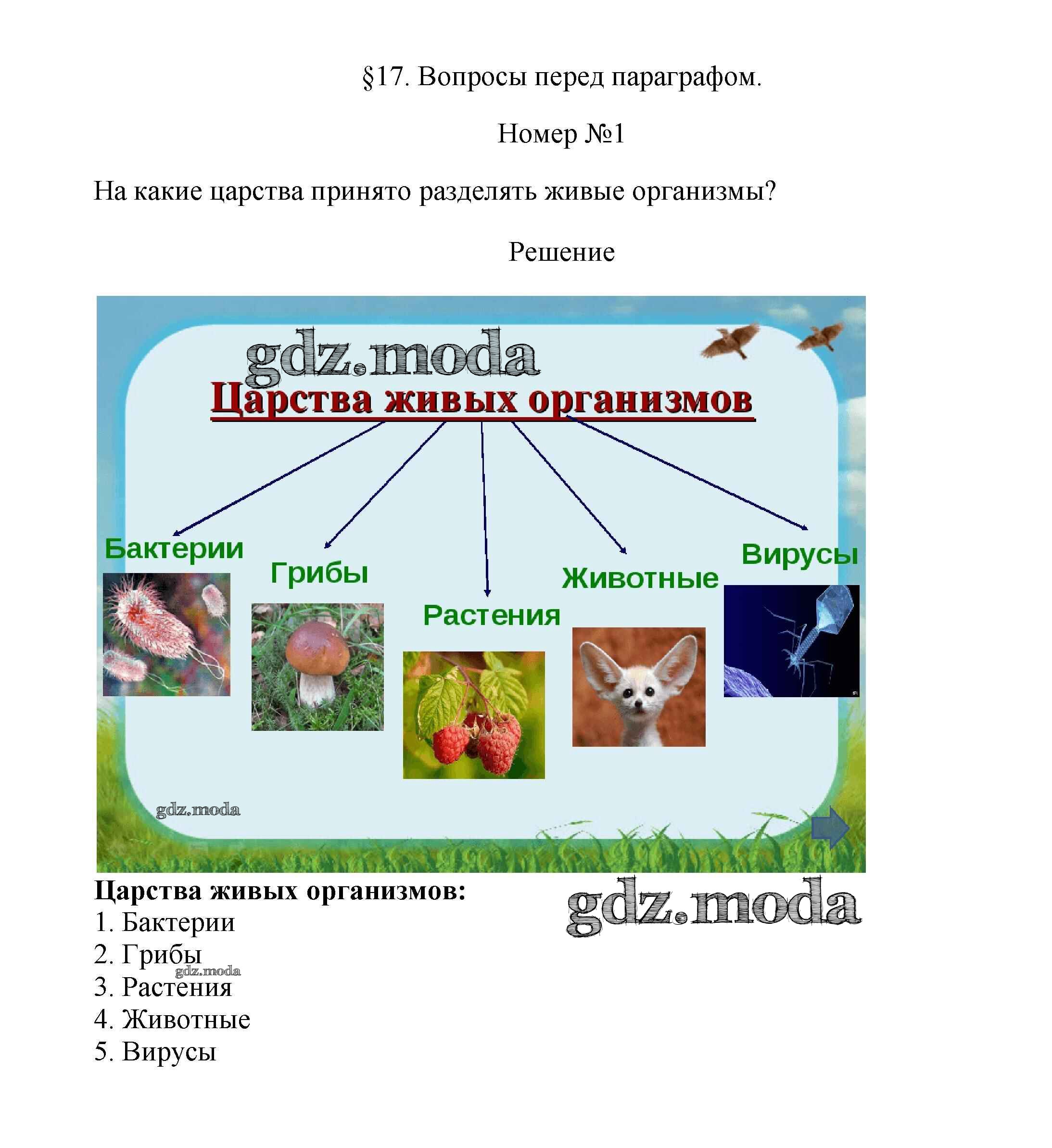 ГДЗ решение к заданию № 1 Биология 7 класс Пасечник В.В. Дрофа 2020 Линейный курс ФГОС бесплатно на гдз.мода!