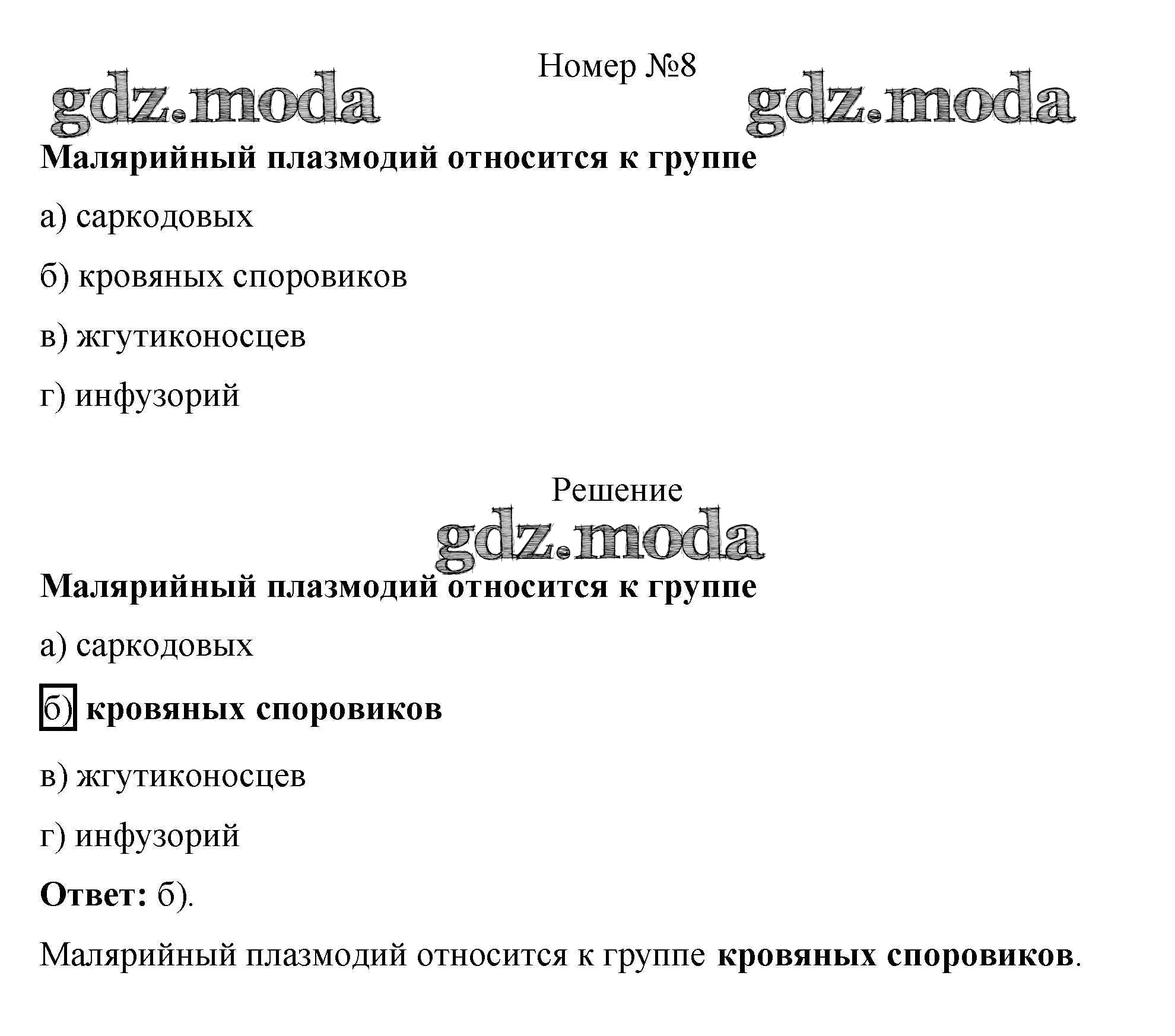 ГДЗ решение к заданию № 8 Биология 7 класс рабочая тетрадь Пасечник В.В. Просвещение 2020 ФГОС бесплатно на гдз.мода!