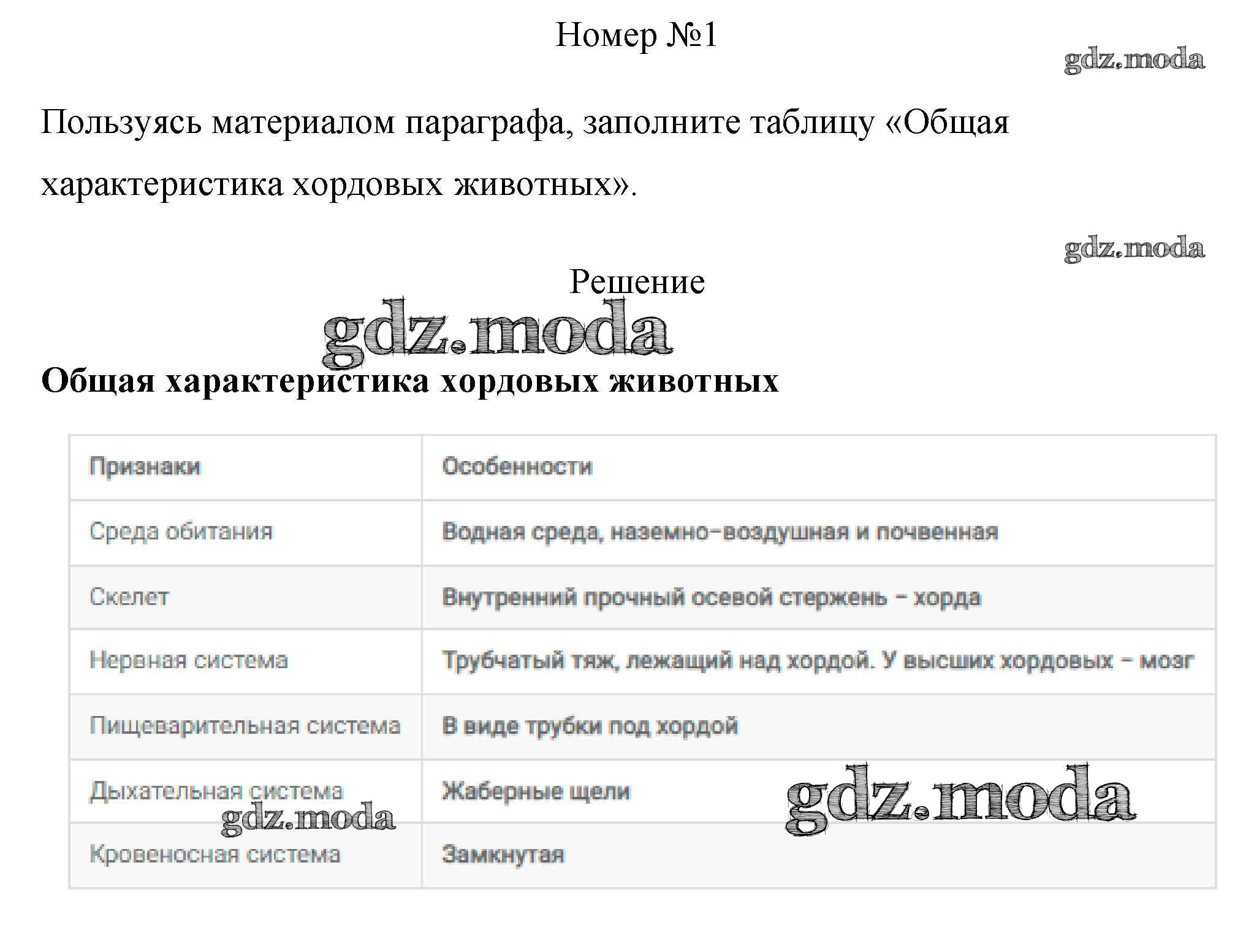 ГДЗ решение к заданию № 1 Биология 7 класс рабочая тетрадь Пасечник В.В. Просвещение 2020 ФГОС бесплатно на гдз.мода!