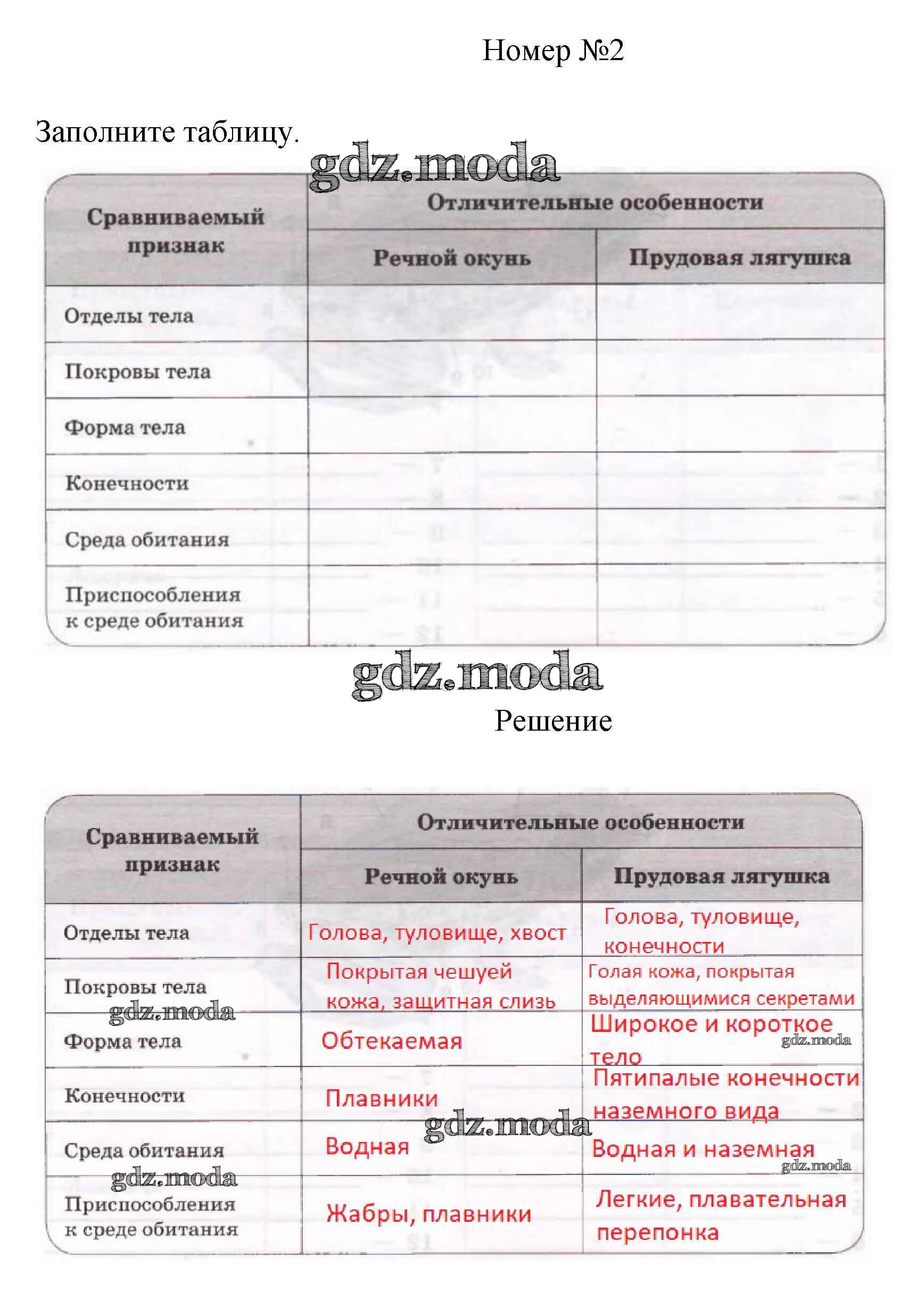 ГДЗ решение к заданию № 2 Биология 7 класс рабочая тетрадь Пасечник В.В. Просвещение 2020 ФГОС бесплатно на гдз.мода!