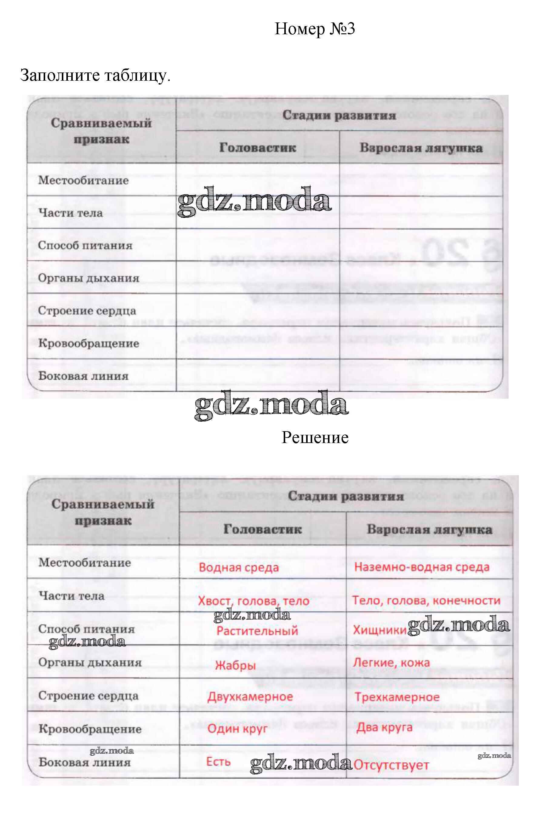 ГДЗ решение к заданию № 3 Биология 7 класс рабочая тетрадь Пасечник В.В. Просвещение 2020 ФГОС бесплатно на гдз.мода!