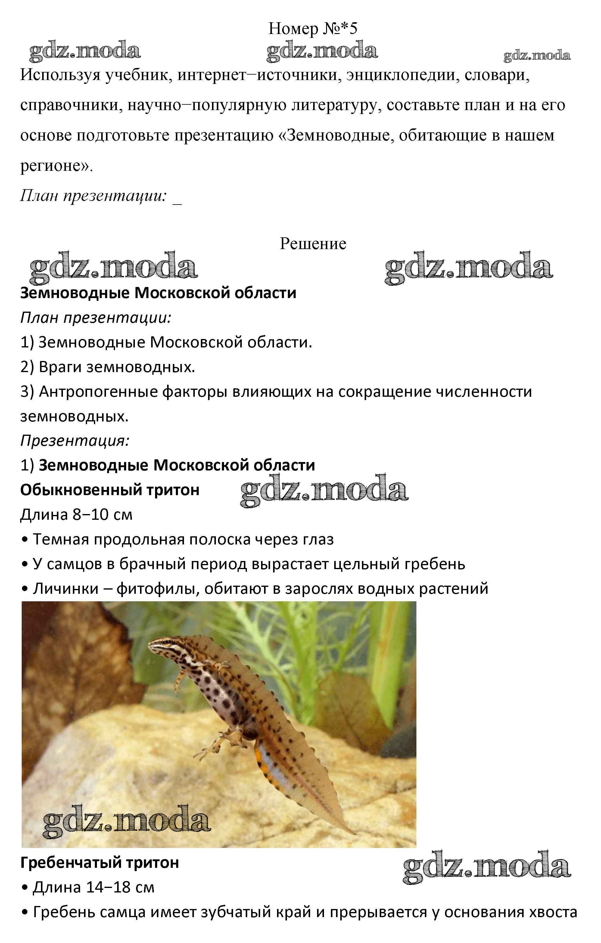 ГДЗ решение к заданию № 5 Биология 7 класс рабочая тетрадь Пасечник В.В. Просвещение 2020 ФГОС бесплатно на гдз.мода!