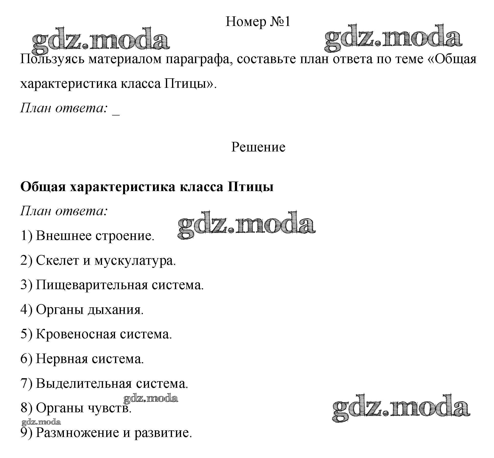 ГДЗ решение к заданию № 1 Биология 7 класс рабочая тетрадь Пасечник В.В. Просвещение 2020 ФГОС бесплатно на гдз.мода!