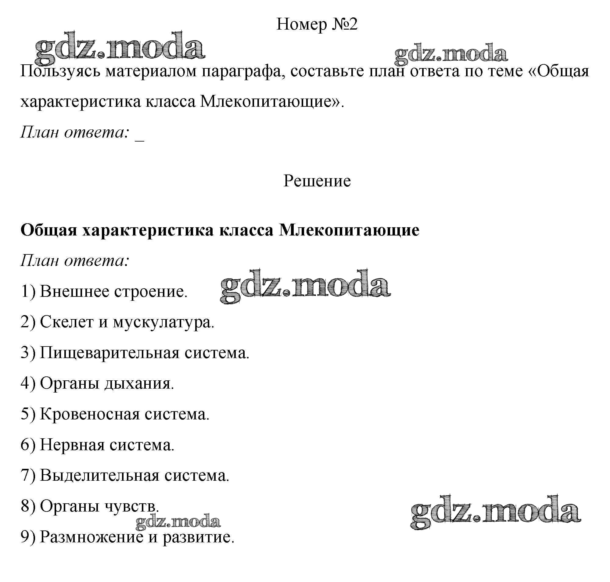 ГДЗ решение к заданию № 2 Биология 7 класс рабочая тетрадь Пасечник В.В. Просвещение 2020 ФГОС бесплатно на гдз.мода!