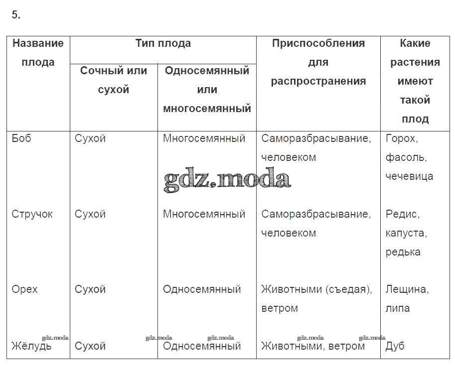 ГДЗ решение к заданию № 5 Биология 7 класс рабочая тетрадь Пасечник В.В. Просвещение 2020 ФГОС бесплатно на гдз.мода!