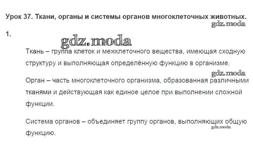 тетрадь 2016 / §37. ткани, органы и системы органов многоклеточных животных / 1