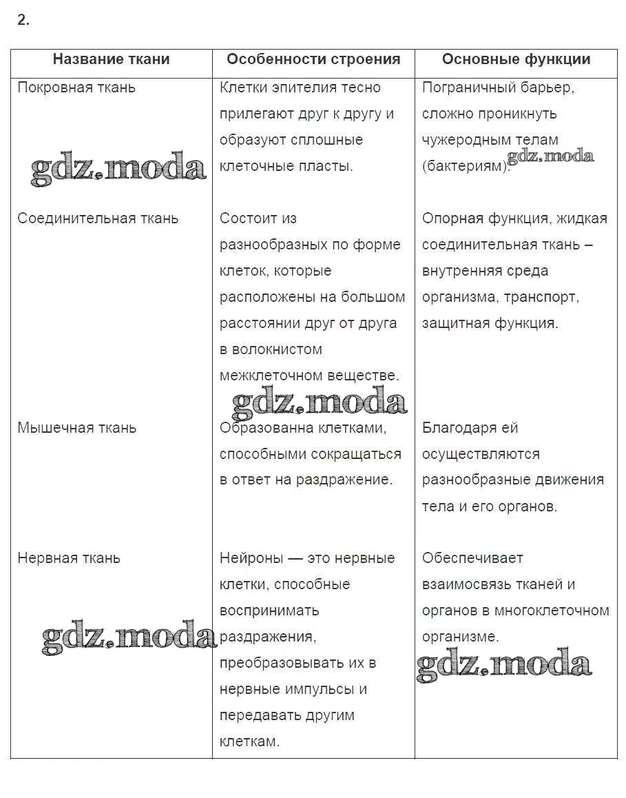 тетрадь 2016 / §37. ткани, органы и системы органов многоклеточных животных / 2