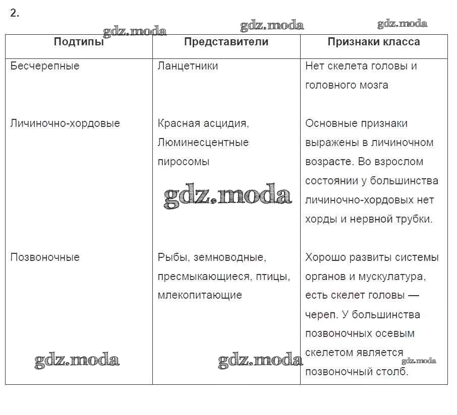 ГДЗ решение к заданию № 2 Биология 7 класс рабочая тетрадь Пасечник В.В. Просвещение 2020 ФГОС бесплатно на гдз.мода!