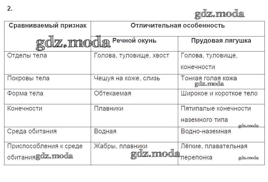 ГДЗ решение к заданию № 2 Биология 7 класс рабочая тетрадь Пасечник В.В. Просвещение 2020 ФГОС бесплатно на гдз.мода!