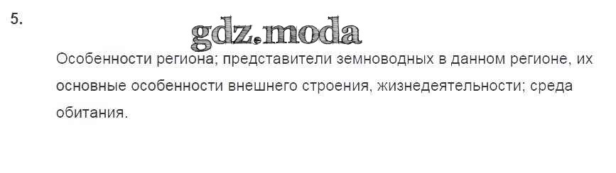 ГДЗ решение к заданию № 5 Биология 7 класс рабочая тетрадь Пасечник В.В. Просвещение 2020 ФГОС бесплатно на гдз.мода!