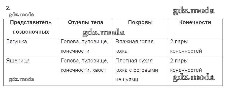 ГДЗ решение к заданию № 2 Биология 7 класс рабочая тетрадь Пасечник В.В. Просвещение 2020 ФГОС бесплатно на гдз.мода!