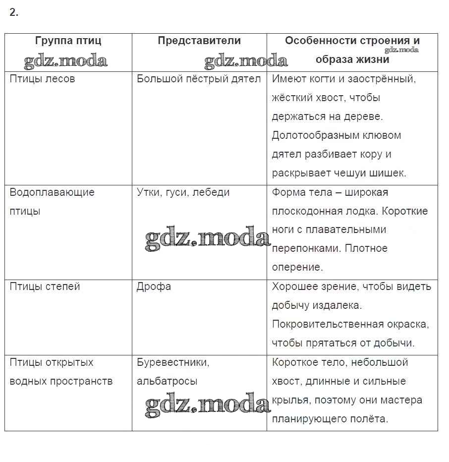 ГДЗ решение к заданию № 2 Биология 7 класс рабочая тетрадь Пасечник В.В. Просвещение 2020 ФГОС бесплатно на гдз.мода!