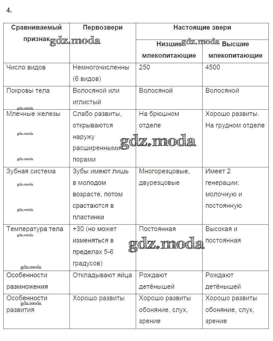 ГДЗ решение к заданию № 4 Биология 7 класс рабочая тетрадь Пасечник В.В. Просвещение 2020 ФГОС бесплатно на гдз.мода!