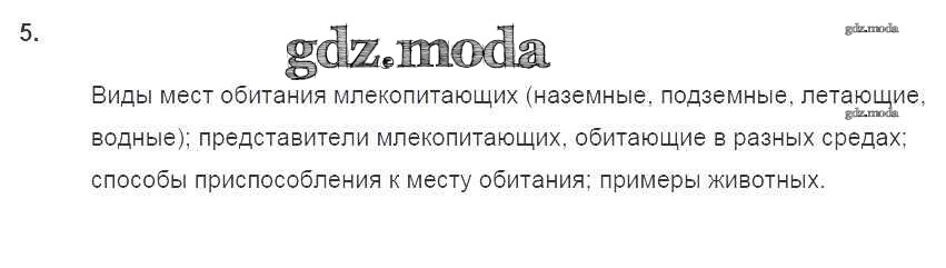 ГДЗ решение к заданию № 5 Биология 7 класс рабочая тетрадь Пасечник В.В. Просвещение 2020 ФГОС бесплатно на гдз.мода!