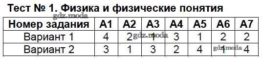 ОТВЕТ на задание № Тест №1. Физика и физические понятия Контрольно-измерительные материалы (КИМ) по Физике 7 класс Бобошина