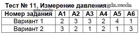 ГДЗ решение к заданию № Тест №11. Измерение давления Физика 7 класс контрольно-измерительные материалы Бобошина С.Б. Экзамен 2014 ФГОС бесплатно на гдз.мода!
