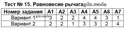 ОТВЕТ на задание № Тест №15. Равновесие рычага Контрольно-измерительные материалы (КИМ) по Физике 7 класс Бобошина