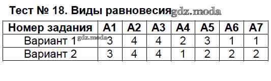 ГДЗ решение к заданию № Тест №18. Виды равновесия Физика 7 класс контрольно-измерительные материалы Бобошина С.Б. Экзамен 2014 ФГОС бесплатно на гдз.мода!
