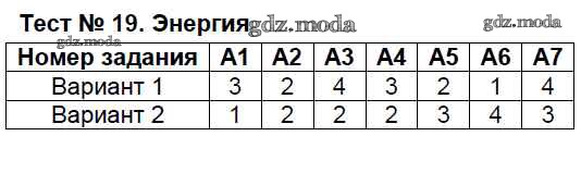 ГДЗ решение к заданию № Тест №19. Энергия Физика 7 класс контрольно-измерительные материалы Бобошина С.Б. Экзамен 2014 ФГОС бесплатно на гдз.мода!