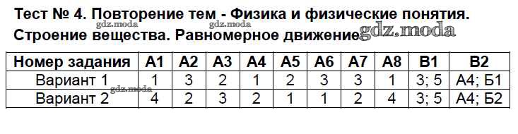 ГДЗ решение к заданию № Тест №4. Повторение тем - Физика и физические понятия и др. Физика 7 класс контрольно-измерительные материалы Бобошина С.Б. Экзамен 2014 ФГОС бесплатно на гдз.мода!
