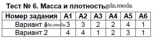 ОТВЕТ на задание № Тест №6. Масса и плотность Контрольно-измерительные материалы (КИМ) по Физике 7 класс Бобошина