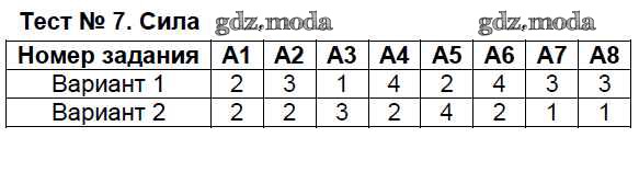 ГДЗ решение к заданию № Тест №7. Сила Физика 7 класс контрольно-измерительные материалы Бобошина С.Б. Экзамен 2014 ФГОС бесплатно на гдз.мода!