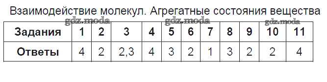 ОТВЕТ на задание № Взаимодействие молекул. Агрегатные состояния вещества Тесты по Физике 7 класс Чеботарева УМК