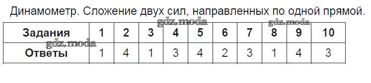 ОТВЕТ на задание № Динамометр. Сложение двух сил, направленных по одной прямой Тесты по Физике 7 класс Чеботарева УМК